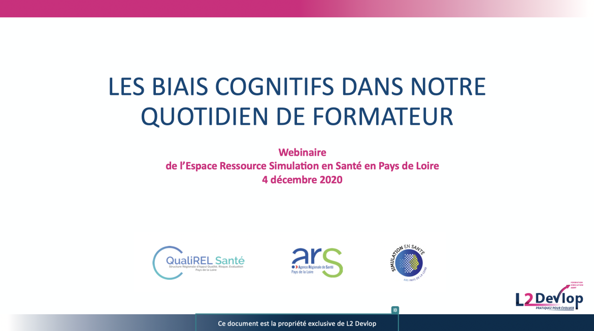 Lors du webinaire de l’Espace Ressource Simulation en Santé des Pays de la Loire, Véronique Delmas, notre directrice, a eu le plaisir d’animer une séquence interactive : « Les biais cognitifs dans notre quotidien de formateur ».